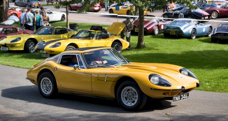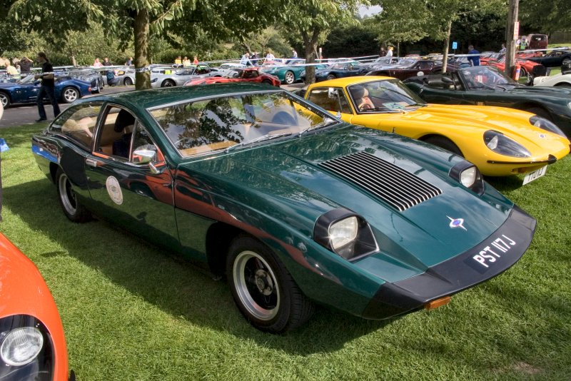 Moving on past V6s and 1800 GTs, we also spotted a rare Mantis 2+2 or two amongst the throng and then we came to a small green on which sat the Mantis XP racer, a green V8 engined coupe (turned out this was fitted